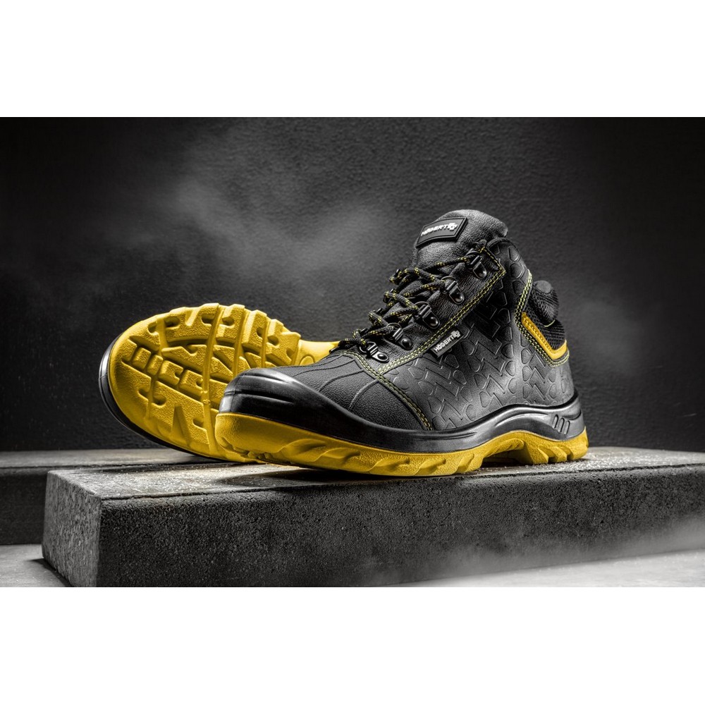 Мужские защитные ботинки соответствуют классу безопасности S1P согласно ISO 20345:2011. Обувь из кожи способствует комфорту и удобству. Обувь оснащена стальным подноском, который защищает пальцы ног от падающих предметов. Благодаря противоскользящей подошве ботинки идеально подходят для ходьбы по неровным и скользким поверхностям. Обувь рекомендуется в логистике, транспорте, в автомобильной промышленности, ремонтных и строительных работах. Они идеально подходят для использования внутри помещений (например, в павильонах).