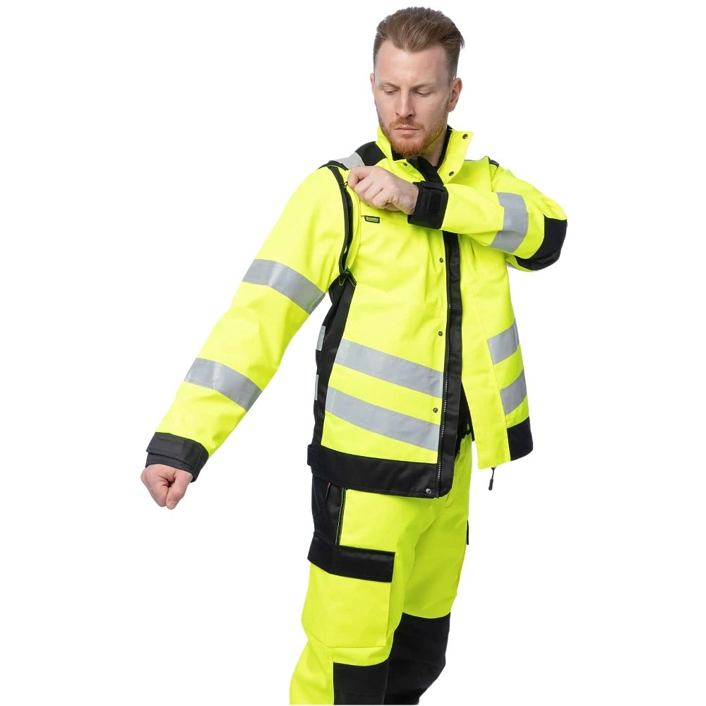 Сигнальная куртка Brodeks KS 225 - удобная и практичная рабочая куртка 2 класса видимости с защитой от воды, масел, смол, брызг кислот и щелочей. Уникальная особенность модели – рукава на молнии можно снять и использовать изделие как сигнальный жилет. Куртка подойдёт тем специалистам, кто работает летом на улице или в помещениях в условиях сильных загрязнений и где важна повышенная заметность.