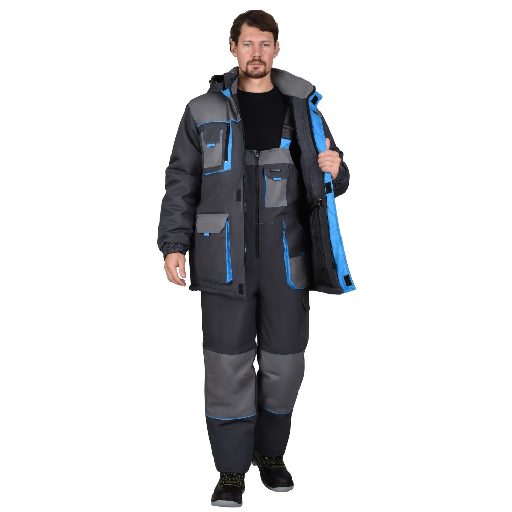 Технические характеристики Костюм СИРИУС-ДВИН зимний, куртка удл., п/к т.серый со ср.сер. и гол. отд.