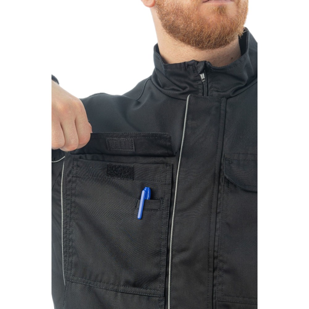 Куртка KS 201 изготовлена из легкой смесовой ткани с низкой плотностью, поэтому она идеально подходит для работ в помещении и в теплом климате. В куртке 7 карманов: можно разместить инструменты и важные вещи. Цвет: черный.