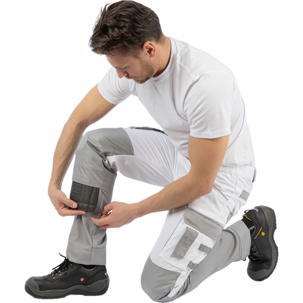 рюки мужские летние Brodeks KS 302, белый/серый – практичные брюки для работы в помещении или на улице летом. Хорошо защищают от общепроизводственных загрязнений. Брюки белого цвета с серыми вставками идеально подойдут для выполнения малярных работ, и особенно для работы в условиях сильной жары и яркого солнца.