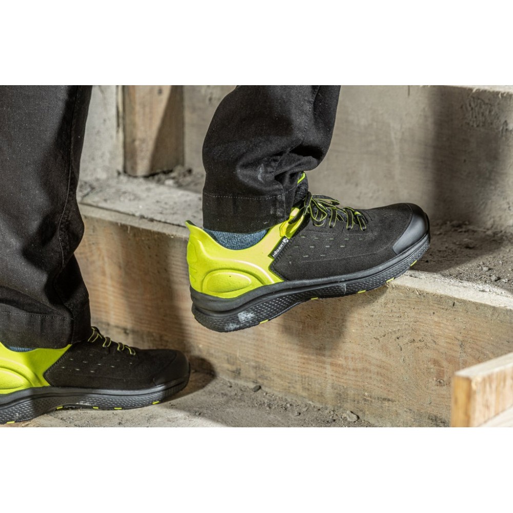 Современные рабочие полуботинки SAUTEN идеально сочетают в себе легкость, прочность и современный дизайн. Изготовленные из микрофибры в сочетании с сеткой, они обеспечивают отличную циркуляцию воздуха и комфорт во время использования. Уникальная черно-желтая расцветка hi-vis со светоотражающими элементами повышает видимость. Они идеально подходят для работников складов и логистики.