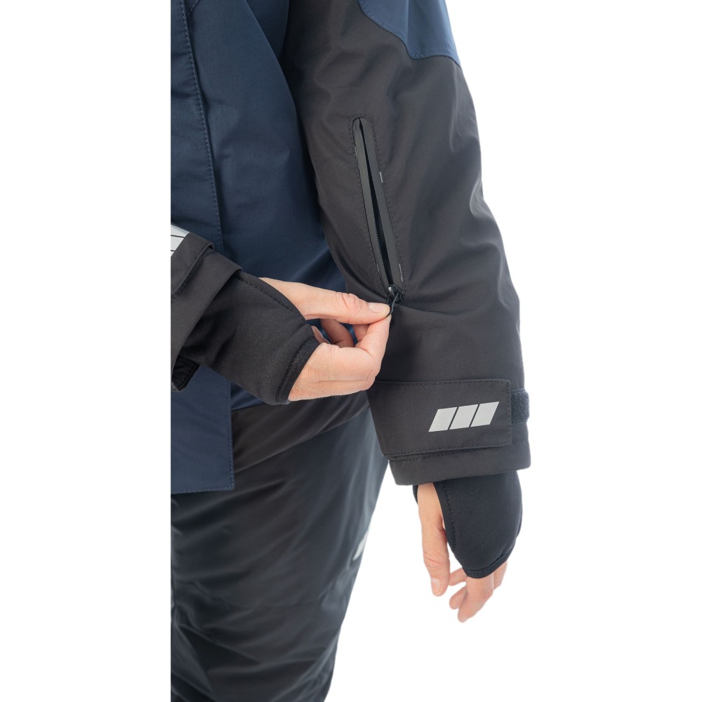 4 наружных кармана: два боковых, карман нагрудный и на рукаве с влагозащитной молнией