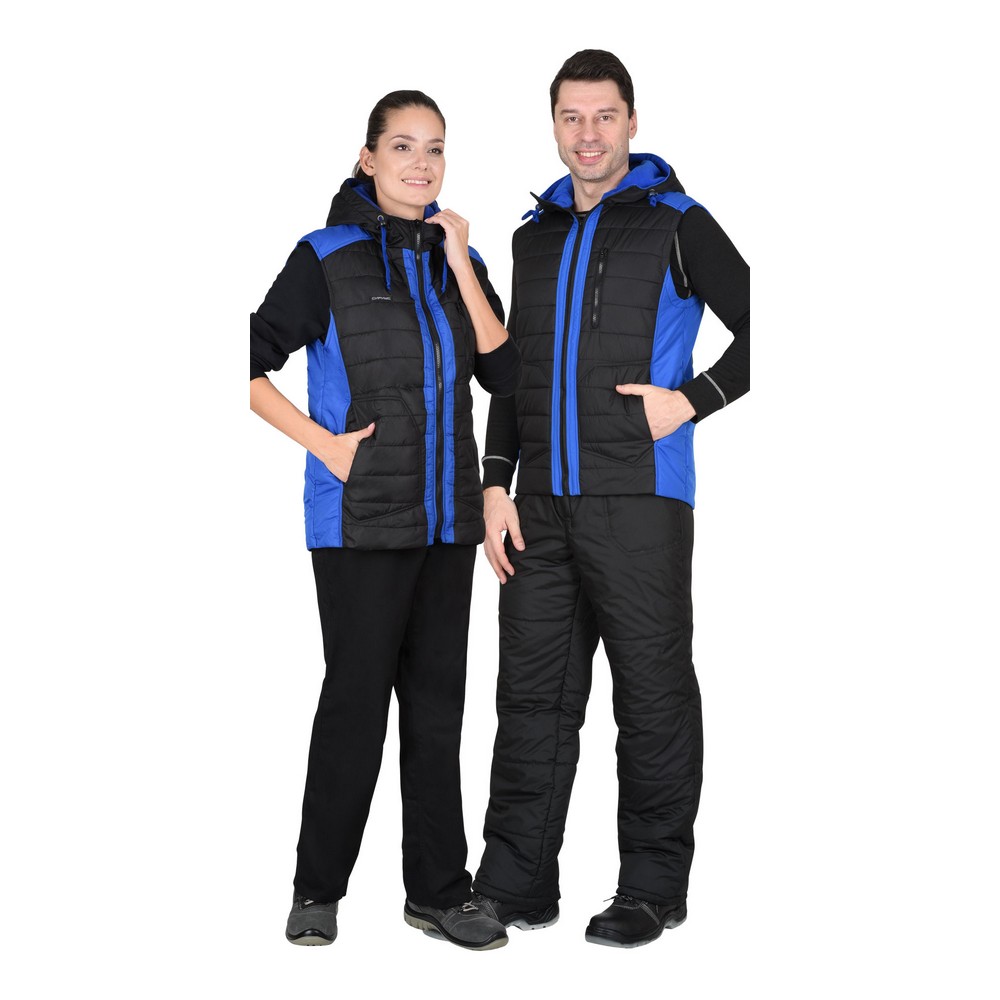 Жилет СИРИУС-УРБАН утепленный с капюшоном черный с васильковым