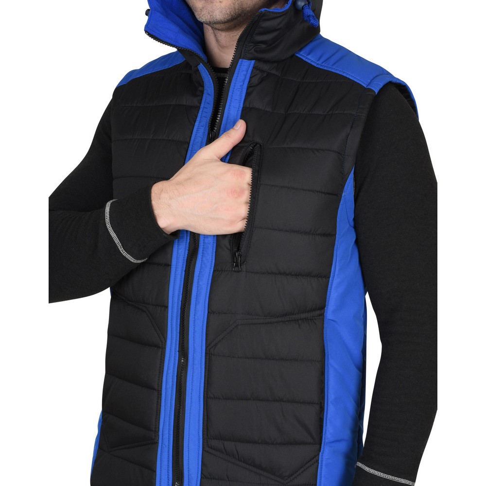 Технические характеристики Жилет СИРИУС-УРБАН утепленный с капюшоном черный с васильковым